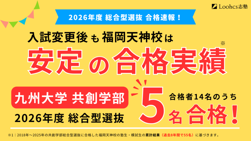 しかし、毎年多くの受験生から「学校や塾では対策する機会がない」との声を耳にします。そのような中、福岡天神校は毎年九州大学共創学部を志望する受験生を多く対策しています。