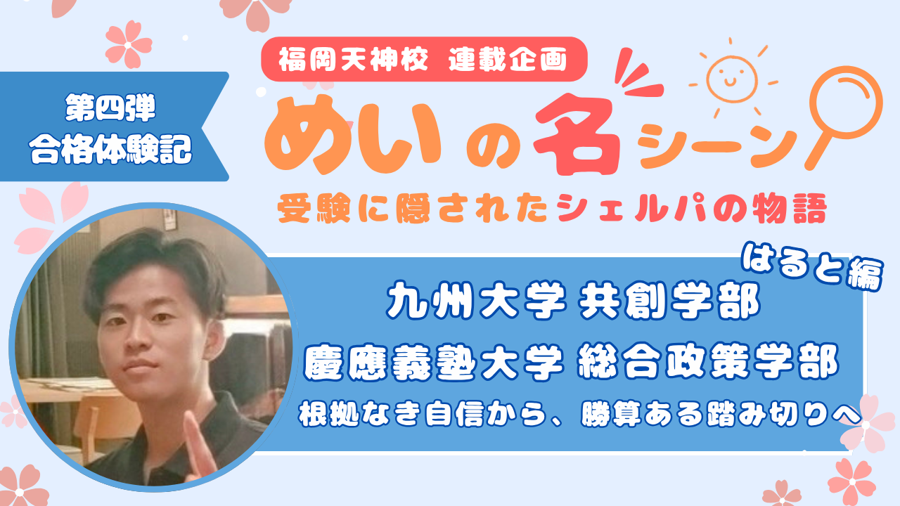 この企画は、福岡天神校の卒業生であるシェルパ(講師)たちの受験生時代を取り上げ、深堀りします。
