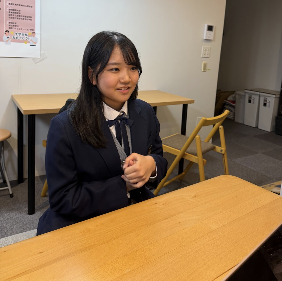 A. いえ、入塾してから決めました。最初は千葉大学の国際教養学部を考えていて、総合型選抜の後に共通テストがある試験でした。勉強も苦じゃなかったし、「総合型選抜を受けてみたい」という気持ちがあって、それで満足していました。