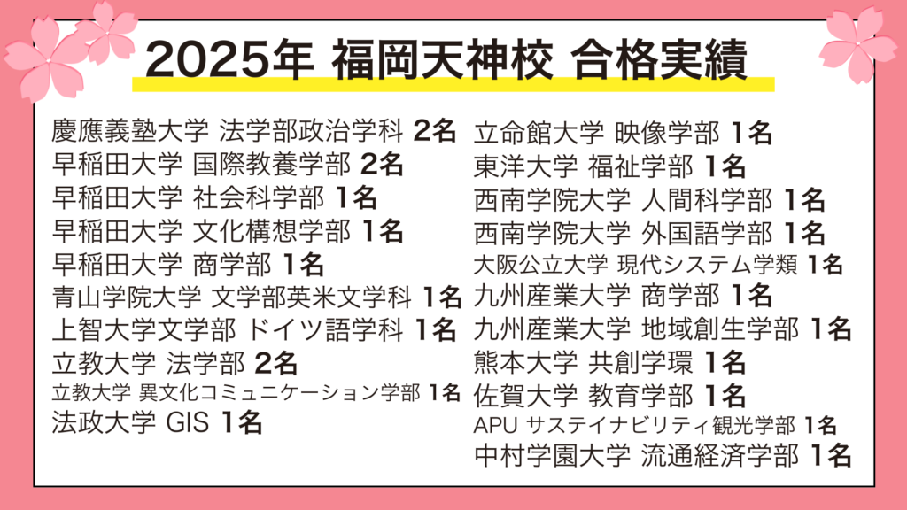 【福岡天神校の合格実績 】