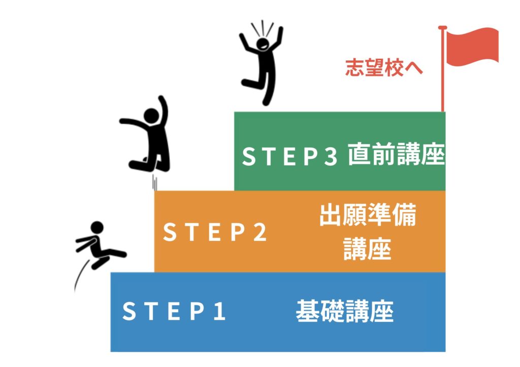 Loochs志塾関西校では、総合型選抜合格までのプロセスを3STEPに体系化。段階的に取り組むことで、今自分がどの位置にいるのかを明確にしながら、着実にゴールへと近づける授業を行っています。