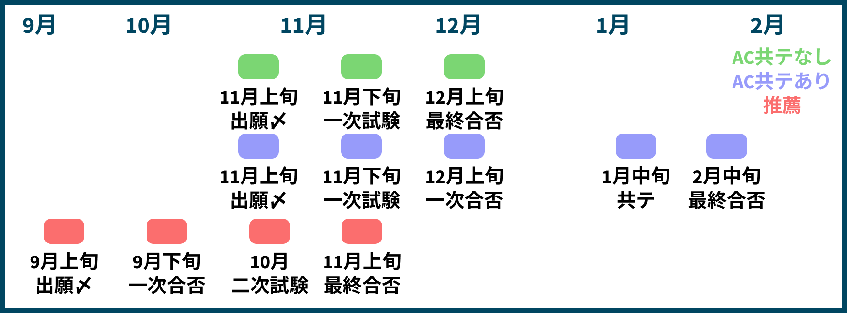 ※大学によりスケジュールや入試内容が年度によって変更になる場合がありますので、必ず公式サイトも確認しましょう。